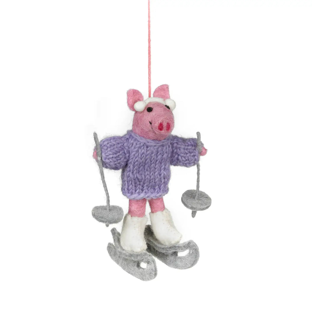 Hit the slopes in style with Neive the Skiing Pig! Dressed in a cozy lilac hand knitted jumper and adorable white felted earmuffs, Neive is ready to bring some sow-per festive fun to your holiday decor. Handcrafted from sustainable felt, this piggy is the pork-fect companion for your Christmas tree or a unique gift for someone special. Let Neive glide into your holidays and and into your heart!