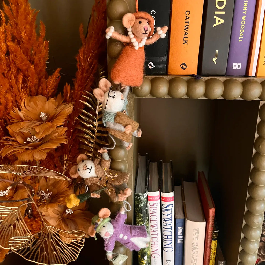 Susie is an expert knitter. Using Fairtrade wool she has made this chunky dress especially for winter in her favourite shade of blue. So, whenever she wants to pop on her specs and read her book, she's all set to curl up on the sofa and dream about her Mr Darcy. Susie is made entirely from traditional needle felting techniques, with handmade clothes and accessories and little wire glasses. Her book even has real paper inside! Dimensions 12.5xm x 8.5cm Materials Wool